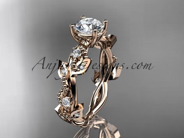 14kt rose gold diamond leaf and vine wedding ring, engagement ring with "Forever One" Moissanite center stone ADLR59