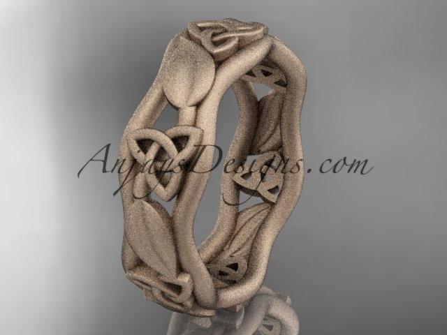 14kt rose gold matte finish celtic trinity knot engagement ring, wedding band CT7105B