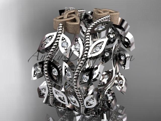 14kt two-tone gold diamond celtic trinity knot, leaf and vine wedding ring, engagement set, wedding band CT7162B