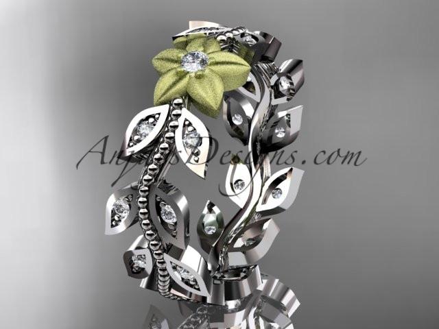 14kt two-tone gold diamond flower, leaf and vine wedding ring, engagement ring, wedding band ADLR161