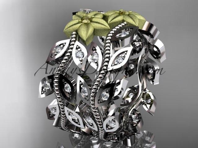 14kt two-tone gold diamond flower, leaf and vine wedding ring, engagement ring, wedding band ADLR162