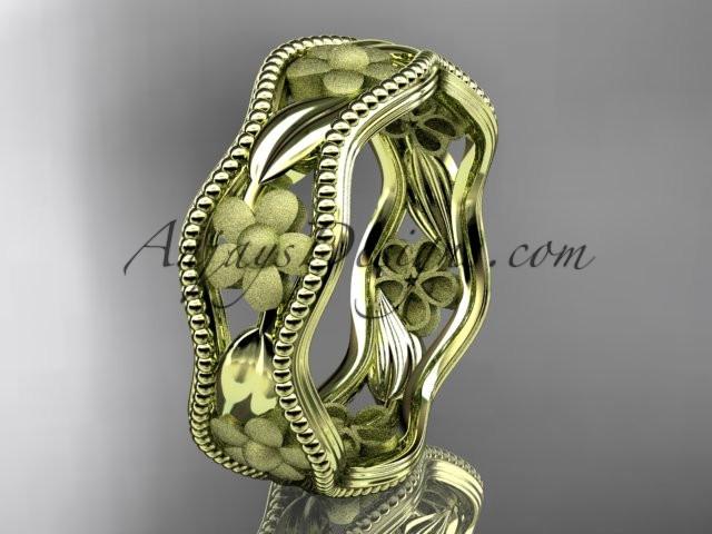14k yellow gold flower wedding ring,engagement ring, wedding band. ADLR190G
