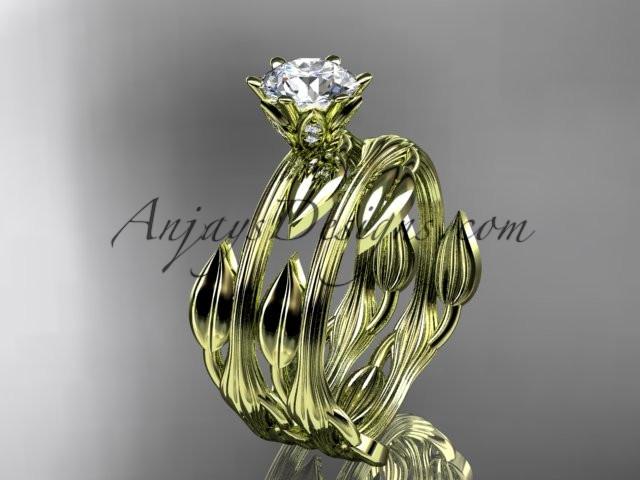 14k yellow gold leaf and vine wedding ring, engagement set ADLR343S