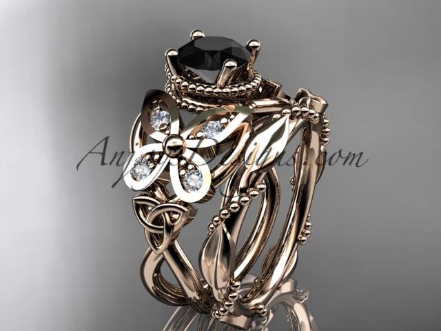 14kt rose gold diamond celtic trinity knot wedding ring, butterfly engagement set with a Black Diamond center stone CT7136S
