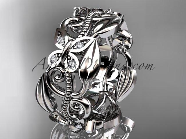 platinum leaf and vine, butterfly wedding ring,wedding band ADLR346B