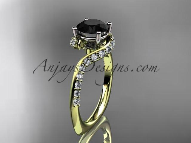 Unique 14k yellow gold engagement ring, wedding ring with a Black Diamond center stone ADLR277