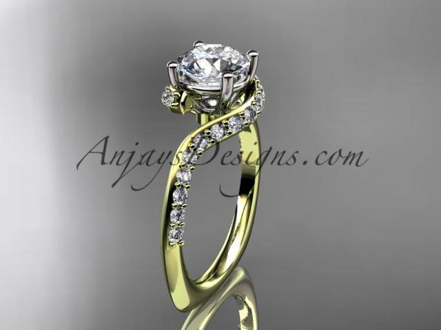 Unique 14k yellow gold engagement ring, wedding ring with a "Forever One" Moissanite center stone ADLR277