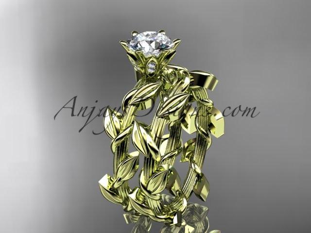 Unique 14kt yellow gold diamond floral wedding ring, engagement set ADLR248S