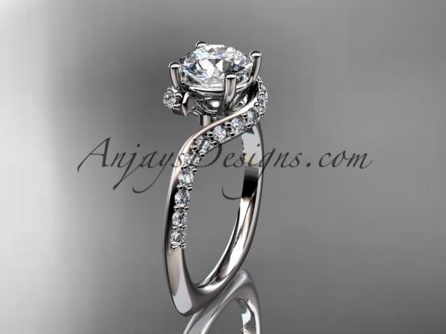Unique 14k white gold engagement ring, wedding ring with a "Forever One" Moissanite center stone ADLR277