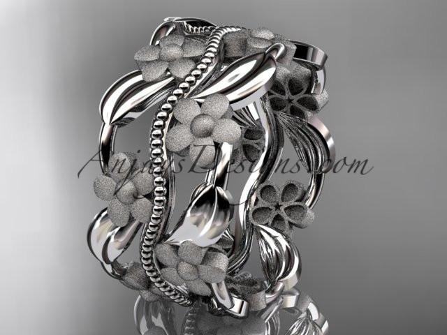 platinum leaf and vine wedding band, engagement ring ADLR188G - AnjaysDesigns