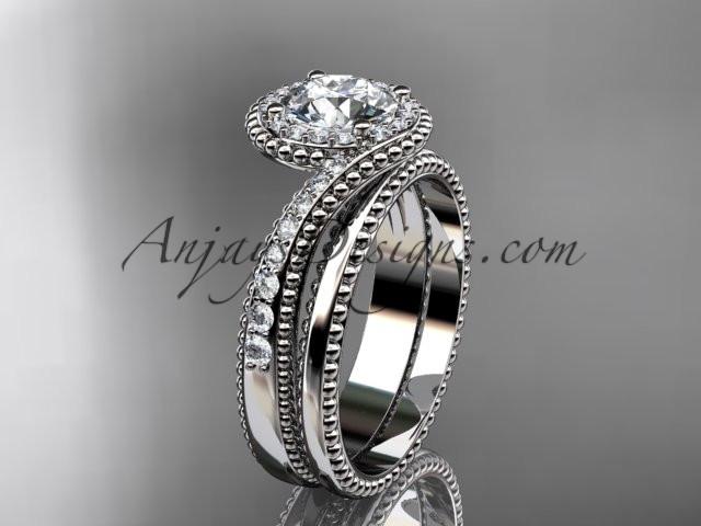 This platinum halo engagement set comes in a beautiful jewelry box.