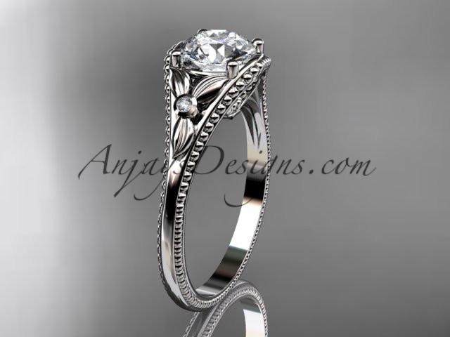 platinum leaf and flower diamond unique engagement ring with a "Forever One" Moissanite center stone ADLR377