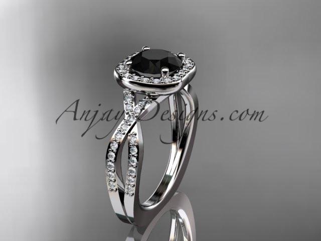 platinum wedding ring, engagement ring with a Black Diamond center stone ADER393