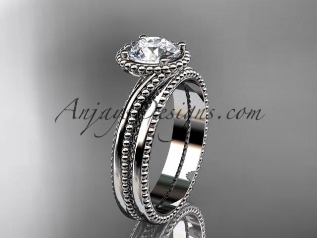 platinum wedding ring, engagement set with a "Forever One" Moissanite center stone ADLR389S