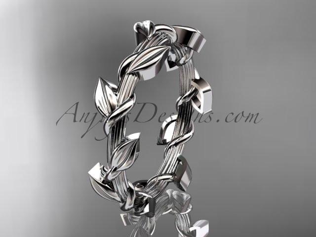Unique 10kt white gold leaf and vine wedding ring ADLR248B