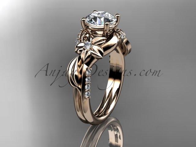 Unique 14k rose gold diamond flower, leaf and vine wedding ring, engagement ring ADLR224