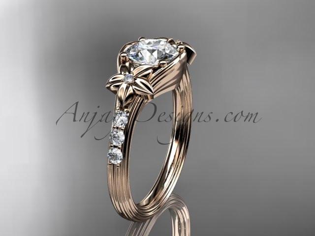 Unique 14k rose gold diamond leaf and vine, floral diamond engagement ring ADLR333