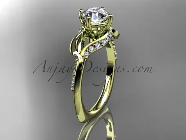 Unique 14k yellow gold diamond leaf and vine wedding ring, engagement ring ADLR225