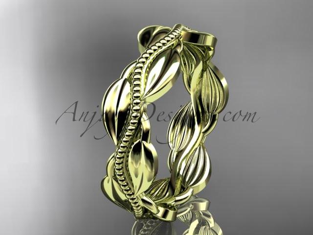 Unique 14k yellow gold leaf and vine engagement ring, wedding band ADLR258B