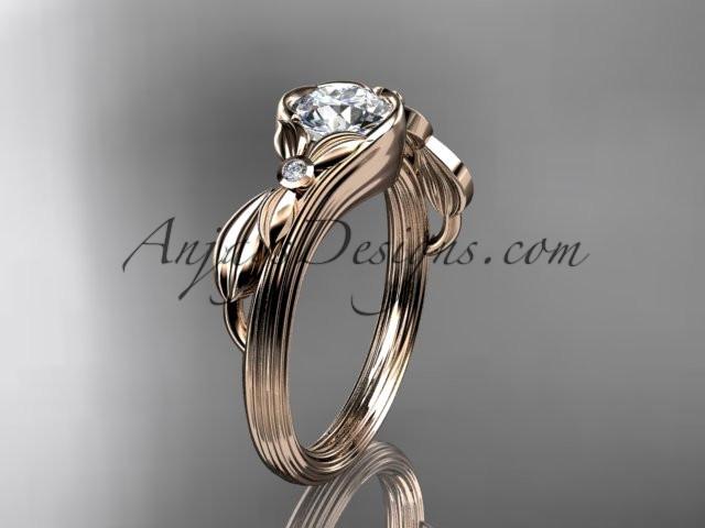 This unique 14kt rose gold leaf and vine engagement ring comes in beautiful jewelry box.