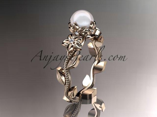 Unique 14kt rose gold diamond floral pearl engagement ring AP223