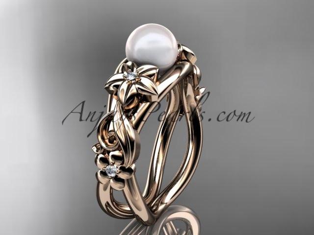 Unique 14kt rose gold diamond floral pearl engagement ring AP302