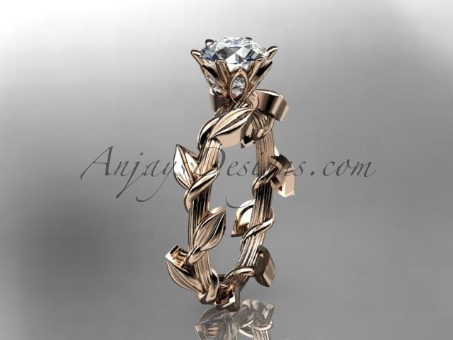Unique 14kt rose gold diamond floral wedding ring,engagement ring with a "Forever One" Moissanite center stone ADLR248