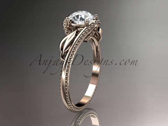 Unique 14kt rose gold engagement ring with a "Forever One" Moissanite center stone ADLR322