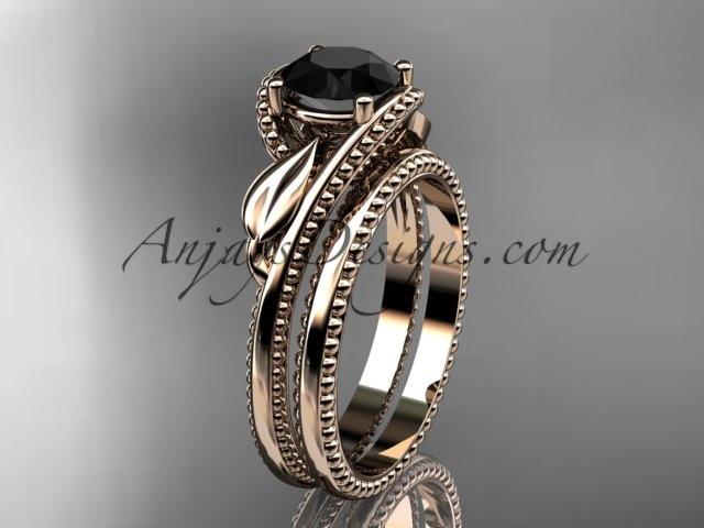 Unique 14kt rose gold engagement set with a Black Diamond center stone ADLR322S