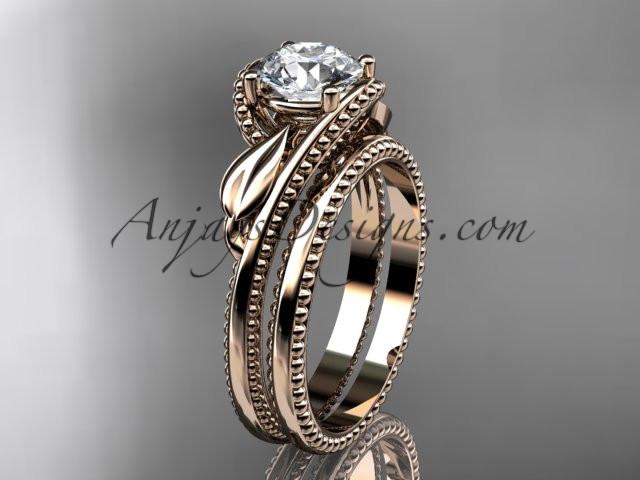 Unique 14kt rose gold engagement set with a "Forever One" Moissanite center stone ADLR322S