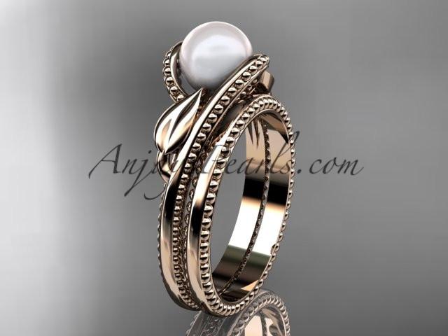 Unique 14kt rose gold leaf and vine pearl engagement set AP301S