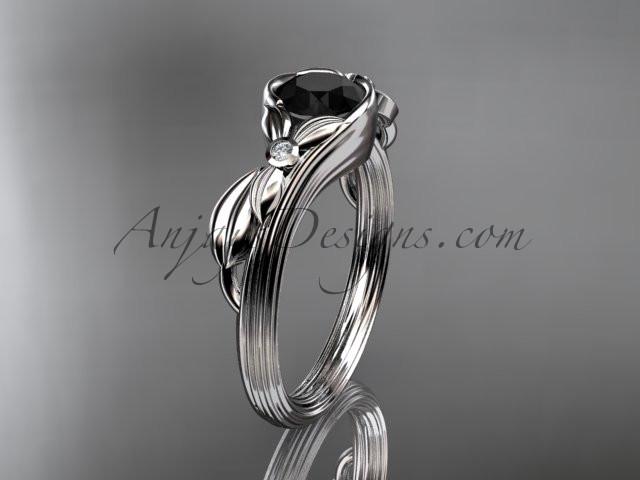 Unique 14kt white gold floral engagement ring with a Black Diamond center stone ADLR324
