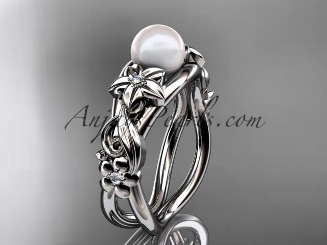 Unique 14kt white gold diamond floral pearl engagement ring AP302