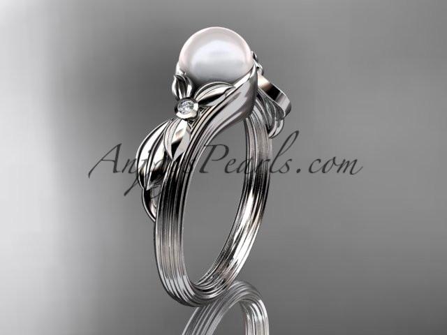 Unique 14kt white gold diamond floral pearl engagement ring AP324