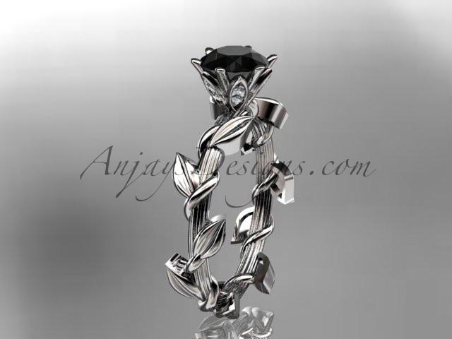 Unique 14kt white gold diamond floral wedding ring,engagement ring with a Black Diamond center stone ADLR248