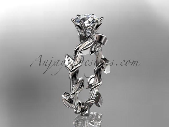 Unique 14kt white gold diamond floral wedding ring,engagement ring with a "Forever One" Moissanite center stone ADLR248