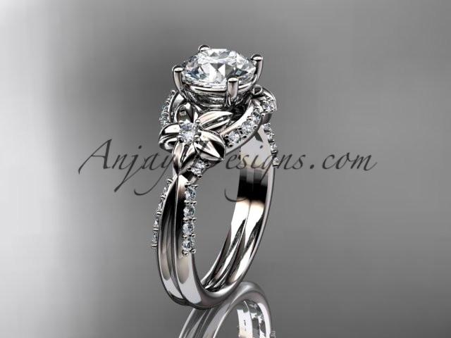 Unique 14kt white gold diamond flower, leaf and vine wedding ring, engagement ring ADLR220