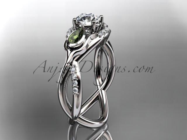Unique 14kt white gold diamond tulip flower, leaf and vine engagement ring ADLR226