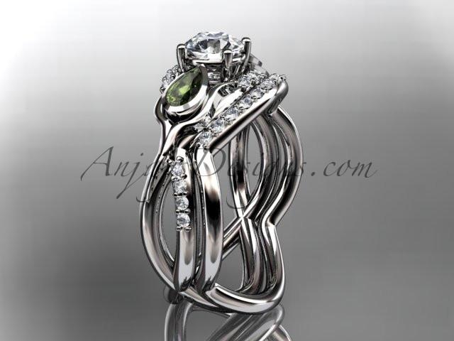 Unique 14kt white gold diamond tulip flower, wedding set, leaf and vine engagement set ADLR226S