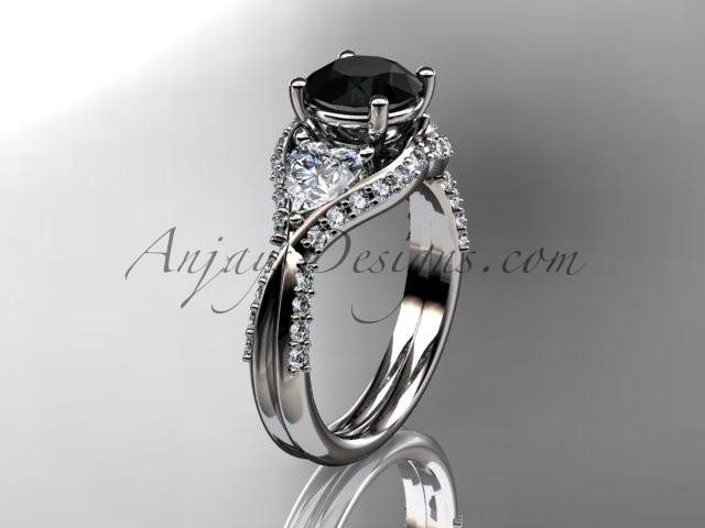Unique 14kt white gold diamond wedding ring, engagement ring with a Black Diamond center stone ADLR319