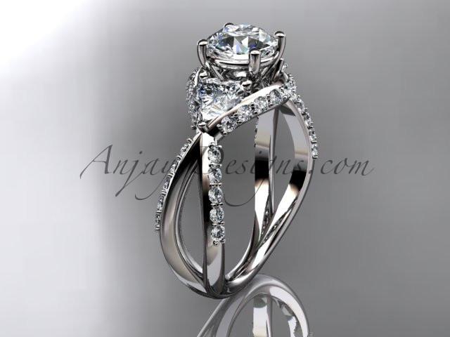Unique 14kt white gold diamond wedding ring, engagement ring with a "Forever One" Moissanite center stone ADLR318
