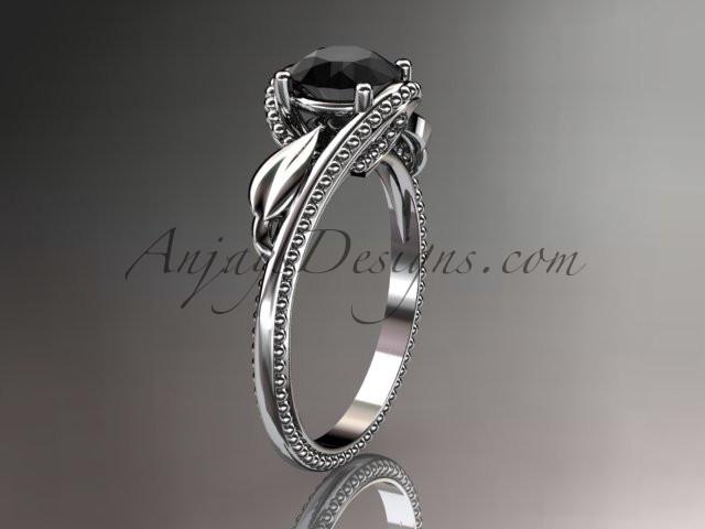 Unique 14kt white gold engagement ring with a Black Diamond center stone ADLR322