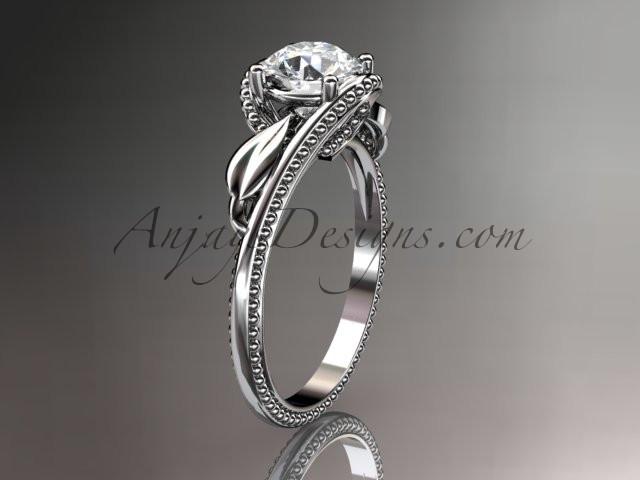 Unique 14kt white gold engagement ring with a "Forever One" Moissanite center stone ADLR322