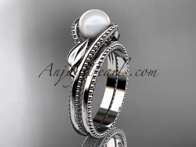 Unique 14kt white gold leaf and vine pearl engagement set AP301S
