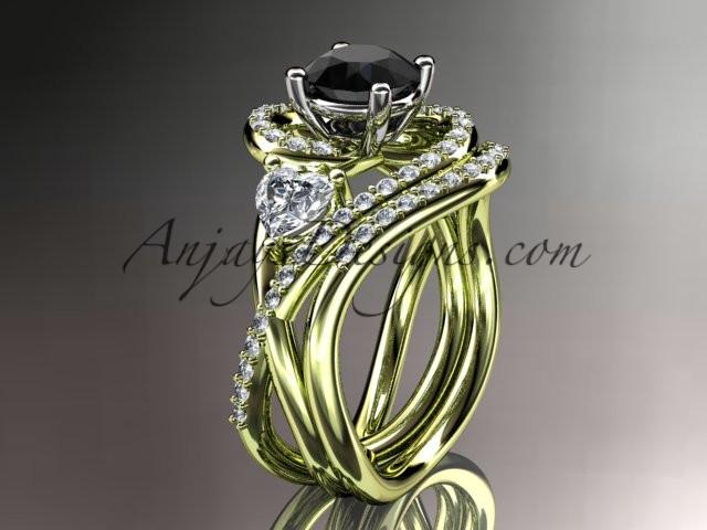 Unique 14kt yellow gold diamond engagement set, wedding ring with a Black Diamond center stone ADLR320S