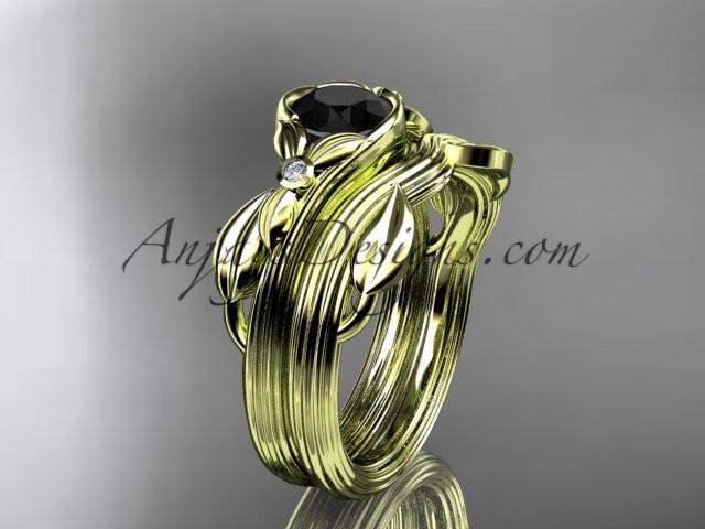 Unique 14kt yellow gold diamond floral engagement set with a Black Diamond center stone ADLR324S