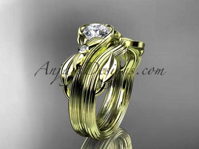 Unique 14kt yellow gold diamond floral engagement set with a "Forever One" Moissanite center stone ADLR324S