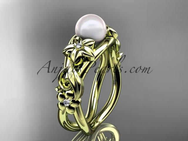 Unique 14kt yellow gold diamond floral pearl engagement ring AP302