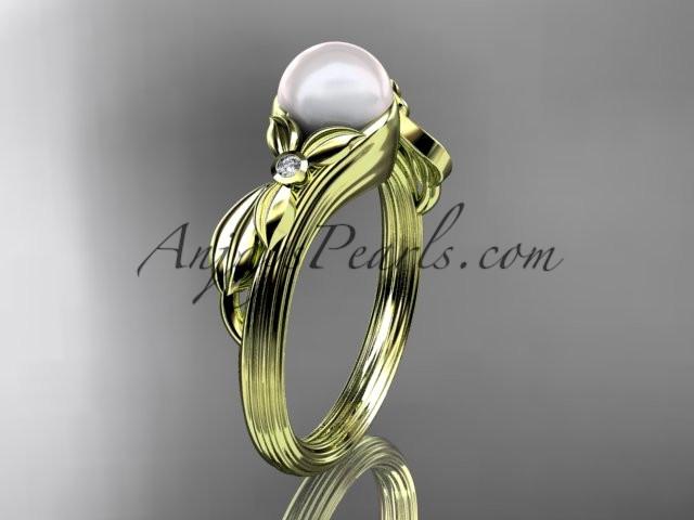 Unique 14kt yellow gold diamond floral pearl engagement ring AP324