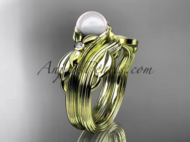Unique 14kt yellow gold diamond floral pearl engagement set AP324S